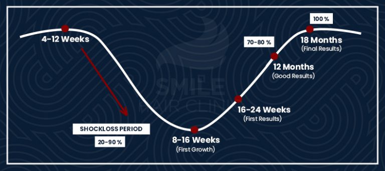 Les cheveux transplantés dans la greffe de cheveux saphir commencent à pousser immédiatement après l’opération. La plupart des personnes qui subissent une greffe de cheveux FUE entrent dans la phase d’effluvium télogène, également connue sous le nom de phase de repos, après les 2-3 premières semaines, ou la perte de cheveux se produit. Cette chute est également appelée perte de choc. Six mois après l’opération, les cheveux commencent à pousser et le résultat est surtout visible à la fin de la première année. Il faut jusqu’à 2 ans pour voir le résultat complet.